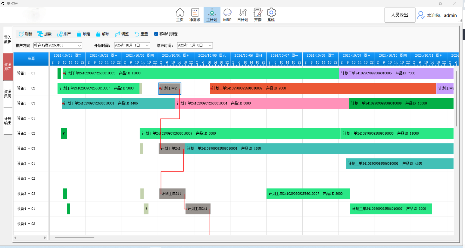• 当生产异常(如设备故障、紧急插单)发生时,系统自动触发重排程,分钟级生成新排产方案,减少人工干预与计划滞后。